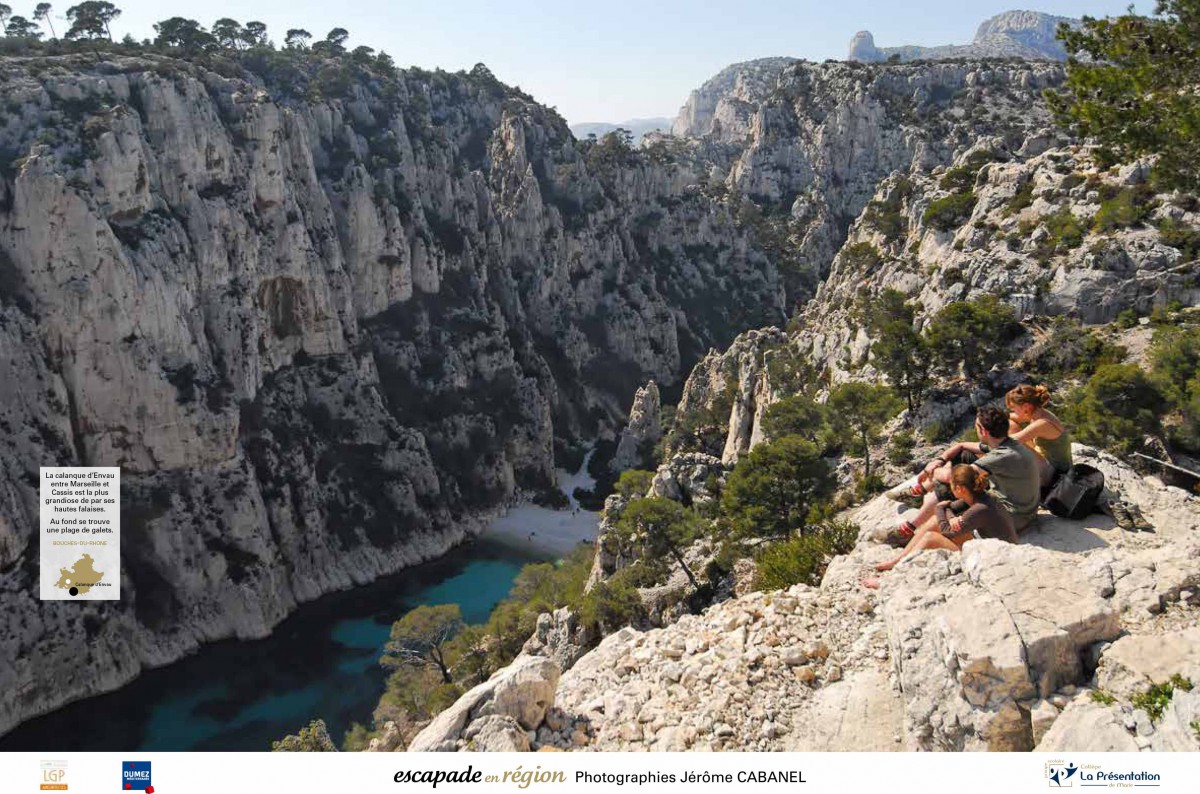 Escapade en région est une exposition qui présente 14 photographies réalisées en Provence Alpes Cote d'Azur, de dimensions  80 par 120 cm, légendées et situées géographiquement sur une mini carte.